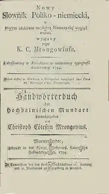 Title page of the Polish-German dictionary of Mrongovius in Polish and German.