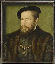 In his own Preface (also included in the printed work), Cattan himself says he has written the book at the request and prayer of "Monsieur de Tays" (who is an interested practitioner of this science) as a service to him, for his diversion, or to give to whom he please, as Cattan is his soldier and servant.[17] "Monsieur de Tays" or "Thais" is the senior military commander Jean de Thais (died 1553), Seigneur de Thais (or Thaïx),[18] who in around 1521 became Master-General of the French Artillery in France. In 1525 his role was extended to include the same office for the French in Italy. In 1543 François I gave him the title of Grand Maître and Capitaine-Général de l'Artillerie. (The title "Grand maître de l'artillerie de France" became one of the Great Offices of the Crown in 1599.) He was succeeded by Charles de Cossé-Brissac in 1547.[19] Jean de Thais campaigned extensively in northern Italy and Piedmont for the French King, as well as in northern France against the English, and had many Italian troops in his armies. He died in 1552 or 1553.