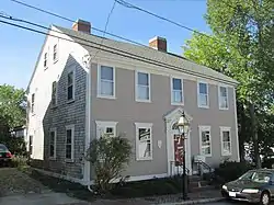 The Christopher Rhodes House is an historic house at 25 Post Road in the Pawtuxet village of Warwick, Rhode Island. The 2+12-story timber-frame house was built c. 1800 by Christopher Rhodes, a prominent local businessman and cofounder with his brothers of the Pawtuxet Bank. The house was probably one of the finest Federal style homes of its time in the village, and is now one of the few to survive from that time. It has a side-gable roof, and is five bays wide with a center entry. The entry is topped by a fanlight and moulded architrave, and framed by Ionic pilasters.[2]