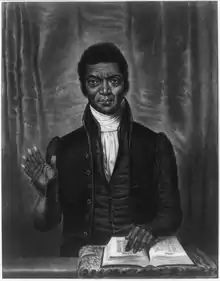 Christopher Rush, born in Craven County, North Carolina, in 1777, was a full-blooded African, and born a slave. He went to New York in 1798, and was subsequently freed. He was licensed to preach in the Methodist Episcopal Church in 1815,[1] and he received his ordination in 1822. He was ordained a superintendent or bishop on May 18, 1828.[2] He was largely instrumental in the separation of the black from the white branch of the Methodist Church, and his address before Bishop Enoch George finally carried the measure, and he was thus a founder of what became the African Methodist Episcopal Zion Church. At that time the African Methodists numbered only one hundred, but Bishop Rush lived to see it a comparatively large and flourishing organization.[1]