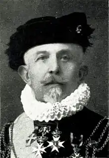 A convert from Lutheranism to Roman Catholicism, he was appointed a Privy Chamberlain of the Sword and Cape (Cameriere Segreto di Spada e Cappa) by Pope Benedict XV on 22 February 1921[3] and re-appointed by Pope Pius XI on 8 February 1922[4] and by Pope Pius XII on 7 March 1939.[5] By tradition, a Norwegian Catholic would hold this position, and he succeeded Wilhelm Wedel-Jarlsberg who held the post some years earlier.[6] He was conferred the title and rank of Count by Pope Pius XI on 25 May 1923.[7] He bought the estate Narverød near Tønsberg (Norway) in 1892, the estate Trystorp with château in Lekeberg (Sweden) in 1914, and the estate Herresta outside Mariefred (Sweden) in 1923. In 1942, he bought the mansion Magleås outside Copenhagen in Denmark. He divided his time between his various properties in Scandinavia and Rome.