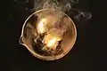 Chromium trioxide (also known as chromium(VI) oxide or chromic anhydride) is an inorganic compound with the formula CrO3. It is the acidic anhydride of chromic acid, and is sometimes marketed under the same name.[6] This compound is a dark-purple solid under anhydrous conditions and bright orange when wet. The substance dissolves in water concomitant with hydrolysis. Millions of kilograms are produced annually, mainly for electroplating.[7] Chromium trioxide is a powerful oxidiser, a mutagen, and a carcinogen.[8]