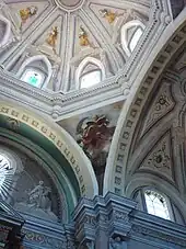 On the gospel side is the chapel dedicated to the Virgin of Tzocuilac, with a larger and richer wrought-iron screen donated by Roque Jaramillo de Illescas in 1767.[3] According to legend, her painted likeness was preserved miraculously on a wall exposed to the elements.[5] This chapel contains a trompe l'oeil painting of the Virgin Mary.[7]