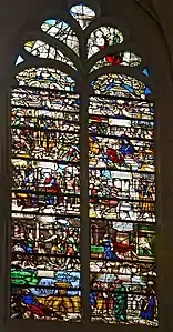 In 1523,[3] the apse of the church collapsed[5] due to a lack of maintenance.[3] Its re-construction started in 1530, maybe as a part of a reconstruction project of the whole church.[5] The new apse was built in the Renaissance style. The glass walls were remarked, notably the ones of the 1530 axial chapel dedicated to the Virgin Mary as well as the ones of the ambulatory which show the story of saint Laurent, the secondary patron saint of the church. New stained glass windows were installed in the church, but they were destroyed during the occupation of the city by the Protestants in 1567–8. New stained glasses were installed, but they were damaged with time.