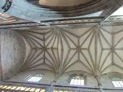 The earliest identifiable style is neither Renaissance nor Gothic - the entry arches are round arches and are typical of the Romanesque style; and at the door consists of another type of arch used at the end of the 15th century. The most visible Gothic element are the rib vaults throughout the ceiling of the nave.