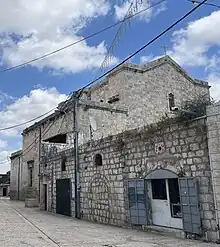 The church sits adjacent to the Great Mosque of Lod.[2] The church building is based on the partially rebuilt Crusader-period church,[1] which had itself been built over part of the remains and footprint of the Byzantine-period predecessor.[3]
