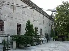 The yard in front of a church is a cemetery with marble tombs – mostly of them dating to the nineteenth and twentieth century - belonging to wealthy Rûms of Istanbul. Also several Patriarchs are buried here. Characteristic of this cemetery are also several gravestones with Karamanli inscriptions,[12] which constitute by far the largest surviving group in this language.[13] The complex is also surrounded by two large cemeteries, respectively Armenian and Greek, each enclosed in high walls.