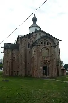 The church was built in 1207 by Novgorod merchants.[1] Saint Paraskevi was the patron saint of the association of merchants who carried out overseas trade.[3] Church of St. Paraskevi is one of the few survived churches in Russia which were built in the beginning of the 13th century.[1] Previously, at least two different wooden Saint Paraskevi churches were standing at the same place, one constructed in 1156 and the second one in 1191.[4]