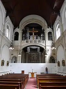 It was built in about 1909, designed by Frederick Walters to replace the Sardinian Embassy Chapel which was demolished in order to make way for Kingsway. The church has been Grade II listed since 1974.[1] The south aisle was added in about 1953, designed by Stanley Kerr Bate, and the facade was rebuilt at that time.[1]