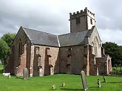 The parish Church of St George was built around 1300, and dedicated in 1306.[3] The north transept and tower were added in the late 14th or early 15th centuries. In the 1830s and 1840s the chancel, vestry and west end of the nave were rebuilt. The west porch and organ chamber were restored between 1960 and 1962 following damage during World War II. The west windows were rebuilt in 1967.[1]