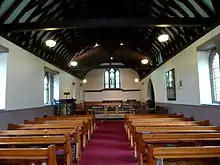 There is an early 20th century pipe organ. The bell gable incorporates the original bell of 1893 by Mears & Stainbank.[5][6][37][38] The bell rope passes through a hole in the roof and hangs inside the west window.