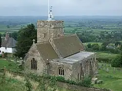 The stone building has clay-tiled roofs. It has a three-bay nave and two-bay chancel. The two-stage tower was rebuilt in 1705. It is supported by corner buttresses.[1] The tower contains six bells, three of which were cast in 1726.[2] The Cupola on the top of the tower, described by Pevsner as “pretty” was constructed in 1705.[5]