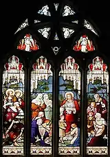 The church has a wide selection of stained glass. The original glass in the tracery of the north nave window consists of canopies with a quatrefoil above that depicts a figure of the Trinity.[10] The stained glass in the west window is by Ward and Hughes and dates from 1885. The late twentieth century stained glass by Keith and Judy Hill depicts Bishop Gundulf.[12]