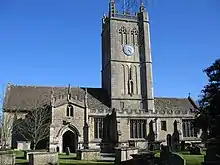 The Domesday Book of 1086 recorded a church at Sherston[1] and the present church is probably on the same site,[2] in the centre of the village beyond the north end of the High Street. It has a chancel, a nave with aisles, a crossing tower, north transept and south porch.[3] Nikolaus Pevsner writes: "An impressive church with a crossing tower, almost too high for the rest."[4]