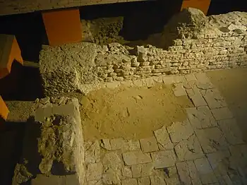 The Church of the Virgin Mary (Czech: Kostel Panny Marie) was the first known church built in the current area of the Prague Castle. The structure was built by Prince Borivoj I after 884, making it not only the oldest church in Prague Castle but also the second oldest in Bohemia. The church was rebuilt after a fire in the 11th century, but was eventually destroyed again in the 13th century and not rebuilt; it is known today due to excavations directly under extant administrative buildings. The surviving foundations indicate a rectangular nave and a semicircular apse; archaeological surveys uncovered tombs for members of the royal Přemyslid dynasty which was prominent in Bohemia during the early Christian era.