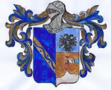 Among the important families of Rome in 1500, the Cimini family is mentioned, living in the Colonna region.[19] Among the noble families of Vico Equense the family of Cimini is registered in 1671.[20] A branch of this family achieved sovereign privileges 10 March 1586, in Taranto, and also recorded as "Patrizia" there. Tommasso Cimini was recorded coming to Lucera in 1605, where he married Barbara Tauro, of a distinguished Luceran family, and had their son Giuseppe. The family is mentioned in the "Capella gentilizia de Signora Cimino nella Chiesa de PP. Cappoccini di Lucera".[21] On 27 October 1788, a branch of the Cimino family were created as Marquis of terra di Casolla Valenzano.[22]