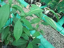 Cinnamomum mercadoi (kalingag) is a small tree, about 6 to 10 metres (20 to 33 ft) high, with a thick, aromatic bark. The plant part of the family Lauraceae, which contains about 45 genera and 2000-2500 species,[2] and is related to the culinary cinnamon, sassafras, and bay tree. The plant is indigenous to the Philippines, where it grows best in forests at low and medium altitudes that sometimes ascend to 2,000 metres (6,600 ft). C. mercadoi is unusual in the cinnamon family in that its essential oil consists large amounts of safrol, whereas other oils of cinnamon contain cinnamaldehyde. It is currently listed in the International Union for Conservation of Nature (IUCN) Red List as "vulnerable" due to the overharvesting and the continuous loss of the Philippine forests.[1]