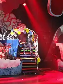 Perry included the song on the setlist for her 2011 world concert tour entitled California Dreams Tour. For performances of the track, the stage was decorated with cartoonish link sausages and rib-eye steak that dangled from the rafters,[22] while Perry was dressed in a catsuit.[23] Along with Perry's performances of "Teenage Dream" and "E.T.", music blog Idolator staff writer Erika Brooks Adickman cited "Circle the Drain" as being a highlight of the tour.[24] The Patriot Ledger's Jay N. Miller found "Circle the Drain" to be "the most rocking" out of the setlist's line-up at TD Garden.[25]