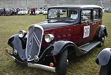 The original Citroën Rosalie was a light-weight racing car that established a succession of records at the Montlhéry racing circuit. More generally the Rosalie was a range of three models/sizes of automobile that comprised the core of Citroën's model range between 1932 and 1938. The three models were originally designated respectively the 8CV, the 10CV and the 15CV, the numbers defining the cars' fiscal horsepower which in turn defined the approximate engine size of each model. After the introduction of the new Traction Avant, the lineup was modified and at the 1934 Paris Salon the two smaller models became the 7UA and the 11UA, now with the overhead-valve engines from the Traction.[1] Starting with the 1933 model year Citroen offered the 1,766 cc 11UD diesel engine option.[2]