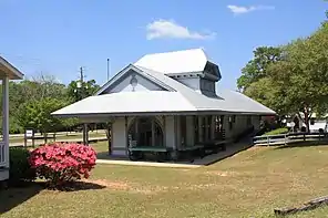 ![]() Mobile and Ohio Railroad depot, located along the trail, which can be seen in the background | |