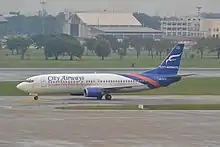 A City Airways Boeing 737-400 at Don Mueang International Airport in November 2013