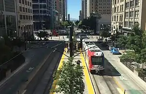 ![]() A southbound train at City Center station, viewed from the City Creek Center skybridge. | ||||||||||||||||