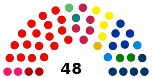 The city council is elected for a five-year term and is based on a direct choice for the candidate with a preference vote: the candidate with the majority of the preferences is elected. The number of seats for each party is determined by a mechanism of majority bonus.