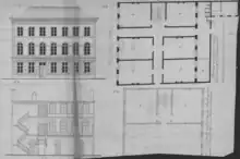 In July 1853 the Provincial Society for Art and Sciences Provinciaal Genootschap van Kunsten en Wetenschappen, the City Gymnasium and the municipality made a plan for a new building. It would house the gymnasium and the great library and cabinet of curiosities of the society. The municipality approved and offered to contribute 6,000 guilders.[14] In July 1854 the provincial authorities approved to contribute 3,000 guilders for building the rooms for the society library.[15] Meanwhile, the cost rose to 14,305, which substantially increased the cost for the municipality. In September 1854 the order for construction of the new school was given.[16]