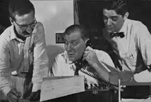 Taken at City News Bureau of Chicago, 1959. Left to right, Fred Thomas, assistant night news editor; Arnold A. "Dorny" Dornfeld, longtime night editor; Alex Zelchenko, night radio-TV editor. Previously reproduced in Dornfeld's book, Behind the Front Page (previously titled, Hello Sweetheart, Get Me Rewrite!), and in the June, 1959 Trib magazine.
