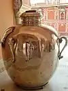 There are two huge sterling silver vessels of 1.6 metres (5.2 ft) height and each with capacity of 4000 litres and weighing 340 kilograms (750 lb), on display here. They were made from 14,000 melted silver coins without soldering. They hold the Guinness World Record as the world's largest sterling silver vessels.[12] These vessels were specially commissioned by Maharaja Sawai Madho Singh II to carry the water of the Ganges to drink on his trip to England in 1902 (for Edward VII's coronation). Hence, the vessels are named as Gangajalis (Ganges-water urns).[5][6][10][13][14]