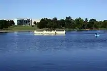 Ferril Lake includes the Prismatic Fountain which dates back to 1908. Originally designed by engineer Frederic W. Darlington and was a revolutionary feature for the time. The recently renovated fountain now boasts LED lights which cycle through different formations, with each cycle spanning an hour.[4][5]