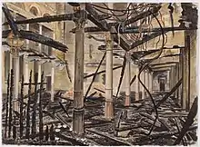 The interior of the City Temple destroyed in The Blitzwatercolour by Vivian Pitchforth (1941)