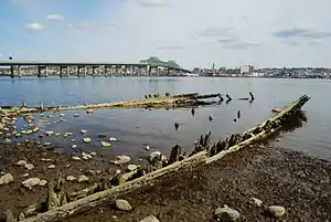 The City of Taunton was a freight sidepaddle steamship that sailed for the Fall River Line. She was built in 1892 in Chelsea, Massachusetts by the Montgomery & Howard shipyard. Her wreckage still lies on the shores of Mount Hope Bay in Somerset, Massachusetts, and is easily visible at low tide.