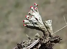 Cladonia pleurota is a species of fruticose, cup lichen in the family Cladoniaceae. It was first formally described as a new species by German lichenologist Heinrich Gustav Flörke in 1808 as Capitularia pleurota.[1] Ludwig Emanuel Schaerer transferred it to the genus Cladonia in 1850.[2] In North America, it is known colloquially as the red-fruited pixie cup[3] or the red-fruited cup lichen.[4]