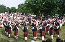 As most all Highlanders, the Frasers have been involved in countless instances of Clan warfare, particularly against the Macdonalds.[17] Two Gaelic war cries of the Frasers have been generally recognized. The first, "Caisteal Dhuni" (Castle Dounie/Downie) refers to the ancestral Castle and Clan seat, which once existed near the present Beaufort Castle. The second is "A Mhòr-fhaiche" (The Great Field).[17]