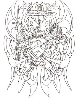 supportersDexter: a chevalier in complete armour, holding in his right hand a baton, all ppr.; Sinister: a horse argent furnished gules;