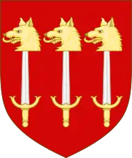 The traditional origin of the Clan Skene is found in a legend of the Clan Robertson in the eleventh century.[3] It is said that a younger son of the Robertson chief of Straun saved the life of the king by killing a savage wolf with nothing but his Sgian-dubh.[3] He was rewarded with lands in Aberdeenshire which he named after the weapon (Sgian/Skene) that had brought him good fortune, and the family thereafter took the name of the lands.[3] The feat is commemorated in the clan chief's shield which displays three wolves' heads impaled on daggers or Dirks.[3]
