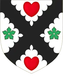Crest: A hand holding a passion cross Gules[2]