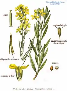 The clan's plant badge is cheiranthus (Latin name Erysimum cheiri), a wildflower that is native to Scotland.[9][10] It is commonly called the wallflower.[9][10]