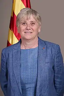 Clara Ponsatí i Obiols (born 19 March 1957, Barcelona) is a Catalan economist and politician from Spain.[1] She was appointed Minister of Education of the Government of Catalonia by President Carles Puigdemont on 14 July 2017, and was dismissed by the Spanish Government pursuant to Article 155 of the Spanish Constitution on 27 October 2017, due to the organisation of the 2017 Catalan independence referendum and the subsequent declaration of independence.[2][3] On 30 October 2017, she went into exile in Brussels together with Carles Puigdemont and three other members of his government, Lluís Puig, Antoni Comín and Meritxell Serret.[4] In May 2018, she returned to the University of St Andrews (Scotland) as a professor.[5] In the 2019 Spanish municipal elections, she was placed last on the list of the candidacy Barcelona és capital - Primàries, led by Jordi Graupera.[6] Since February 2020, she is a Member of the European Parliament within the Junts i Lliures per Europa grouping.[7]