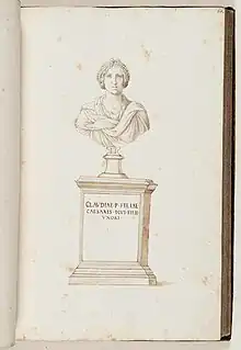 ![]() Drawing of a portrait bust of Claudia (Jacopo Strada, c. 1570) | |