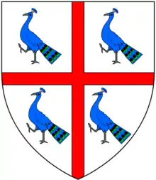 ![]() Arms of Smith of Great Baddow: Argent, a cross gules between three peacocks azure | |