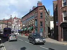 By 1881, the area was regarded as a slum, and was cleared so that a new street could be constructed. Designed to improve access to the new Skeldergate Bridge, it was named Clifford Street after nearby Clifford's Tower.[3][2] The Friends Meeting House was extended, with a new main entrance on the new road. From 1882, the York Tramways Company ran horse-drawn trams along the street. In 1892, a building was opened to house the city' police headquarters and main fire station. The fire station moved to a new building on the street in 1938, which was demolished in 2018 and replaced with apartments.[1][2][4] In 1910, the city's electricity board moved into offices on the street, also setting up a showroom.[1] The York Dungeon visitor attraction is located on the street.[5]