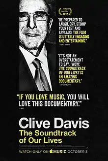 Clive Davis: The Soundtrack of Our Lives is a documentary about the career of American record executive Clive Davis. It was directed and edited by Chris Perkel and produced by Michael Bernstein.[1] The film is based in his autobiography The Soundtrack of My Life, released in 2013.