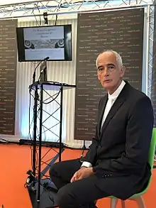 Clive Wilkins (born 25 June 1954) is a British figurative artist.[1] He is the author of The Moustachio Quartet, a series of novels that explore perception and the subjective experience of thinking;[2][3][4] and with Nicky Clayton is co-founder of the Captured Thought,[5][6][7][8] an arts and science collaboration. He is the first Artist in Residence in the Department of Psychology at The University of Cambridge,[9][10] a position held since 2012. Wilkins, along with Clayton, was made Honorary Director of Studies and advisor to the China UK Development Centre (CUDC) in 2018. He has been awarded professorships by Nanjing University, Institute of Technology, China (2018),[11] Beijing University of Language and Culture, China (2019),[12][13] and Hangzhou Diangi University, China (2019).[12][13] Wilkins was made Co-Director of the Cambridge Centre for the Integration of Science, Technology and Culture (CCISTC)[14] in 2020.
