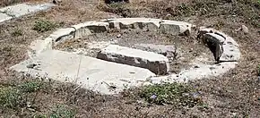 The small, circular shrine of Venus Cloacina was situated before the Basilica Aemilia on the Roman Forum and directly above the Cloaca Maxima. Some Roman coins had images of Cloacina's shrine. The clearest show two females, presumed to be deities, each with a bird perched on a pillar. One holds a small object, possibly a flower; birds and flowers are signs of Venus, among other deities. The figures may have represented the two aspects of the divinity, Cloacina-Venus.[5]