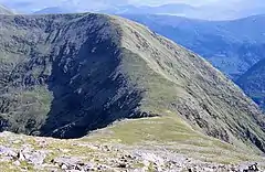 ![]() Devil's Ladder col as seen from Carrauntoohil, with the summit ridge to Cnoc na Toinne behind | |