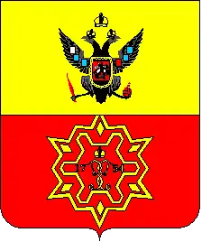 In the second half of the 19th century Yelisavetgrad's authorities got the proposal of the then Head of the Arms Division (Heraldry Department) Bernhard Karl von Koehne to change the city's coat of arms. The new project had a red French shield with a yellow contour of the six-bastioned Fort of St. Elizabeth (now much simplified and more resembling a six-pointed mullet) and the escutcheon of the Kherson Province (to which Yelisavetgrad belonged) in the canton. The shield was topped with a silver mural crown and surrounded by two golden ears of wheat entwined with a red ribbon of the Order of St. Alexander. It was never adopted by the city authorities.