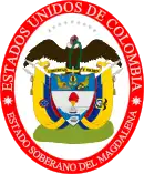 The Department of Magdalena, created in 1824 as one of the original nine Sovereign States of the United States of Colombia, originally used the Coat of arms of Colombia as the official arms of the state with the addition of an inscribed oval around the shield with the words "ESTADO SOBERANO DEL MAGDALENA" (Spanish: Sovereign State of Magdalena). In 1886 the states were dissolved and departments were created instead, with the new change of governance came changes in the coat of arms. To meet this challenge the Department of Magdalena held a meeting with institutions and individuals to address this issue, and finally after different proposals were presented, the coat of arms designed by the painter Alvaro Corpacho was finally adopted as the official insignia for the department.