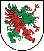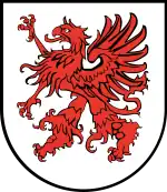 The coat of arms of Pomerania, also known as the Pomeranian Griffin,[lower-alpha 1] is the symbol of Pomerania, a historical region on the southern shore of the Baltic Sea in Central Europe, split between Poland and Germany. It depicts a red griffin with yellow (golden) beak and claws, placed within a white (silver) shield. It originates from the late 12th century.[1]